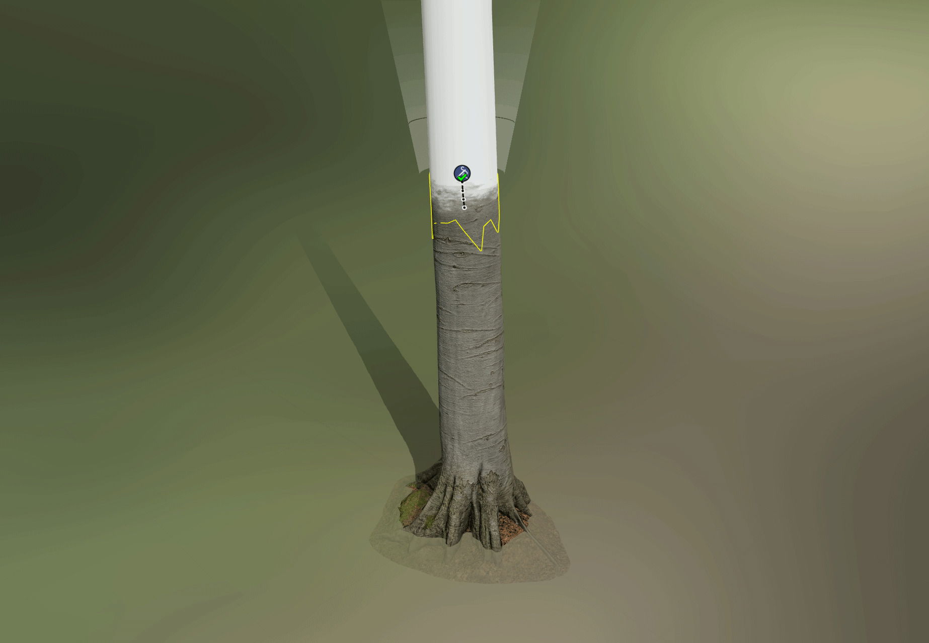 Thanks to the “Stitch” tool, it's possible to combine custom assets and Speedtree assets quite easily. Although it needs to be positioned correctly, it is a great help in combining the two asset types together. Note that the Stitch always comes with a branch that represents the continuity of the trunk. It's to this branch that you must assign the texture we created earlier.