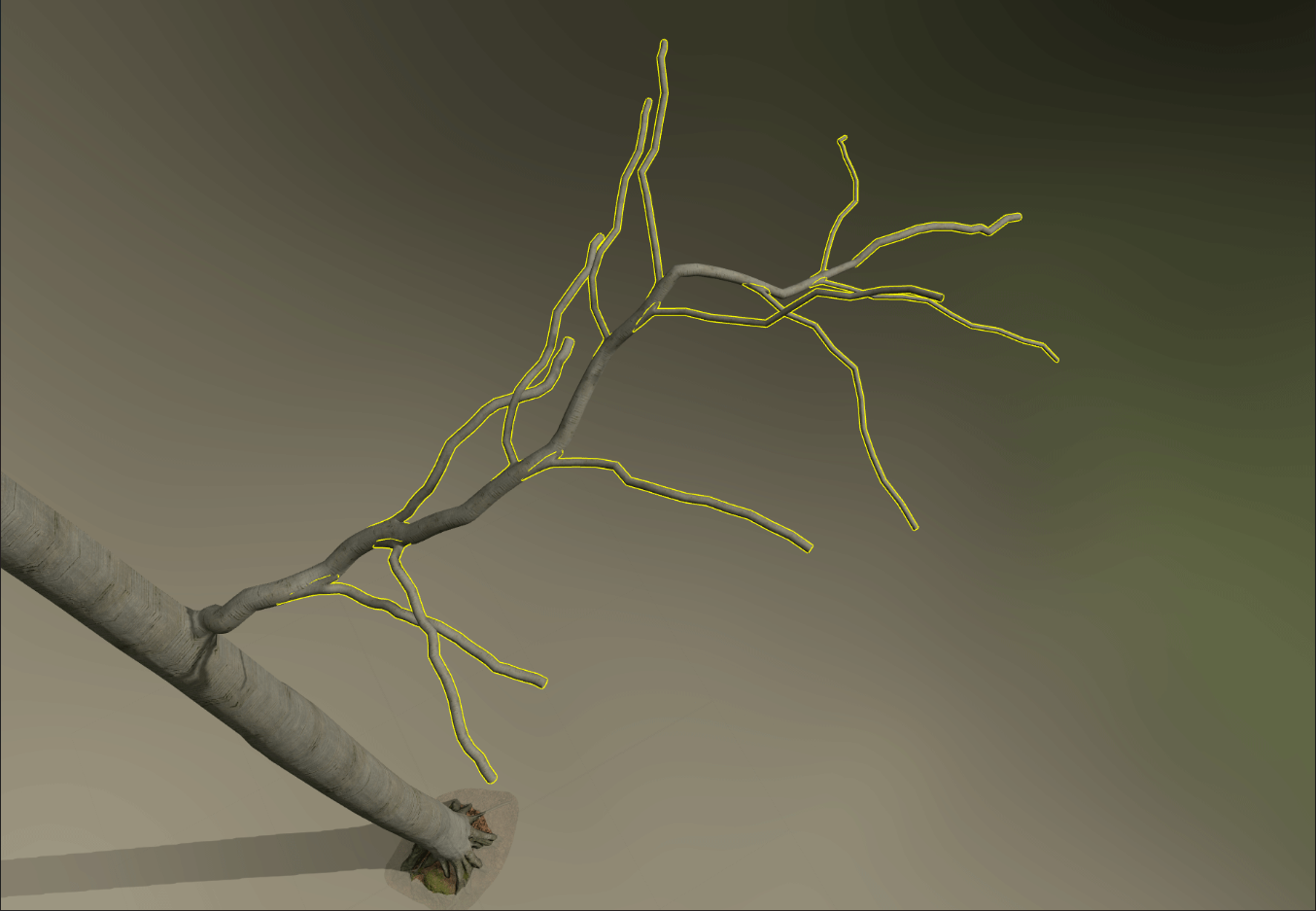 Structure workflow - The rest of the structure is quite similar to that of Speedtree in general. But since with Nanite you don't have to bake entire branches for use on planes to optimize the trees as much as possible, the real difference is the number of 3d branch levels, which is greater than with a traditional workflow.