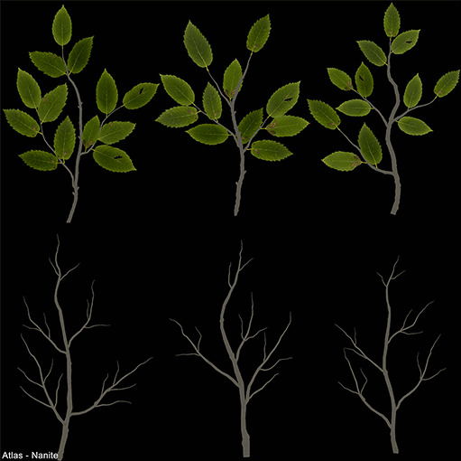 Nanite Atlas Specification - While it's usually necessary to include as many different-sized branches as possible in an atlas, here too Nanite requires you to work differently to traditional vegetation.