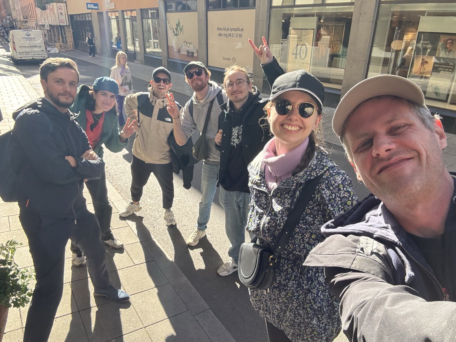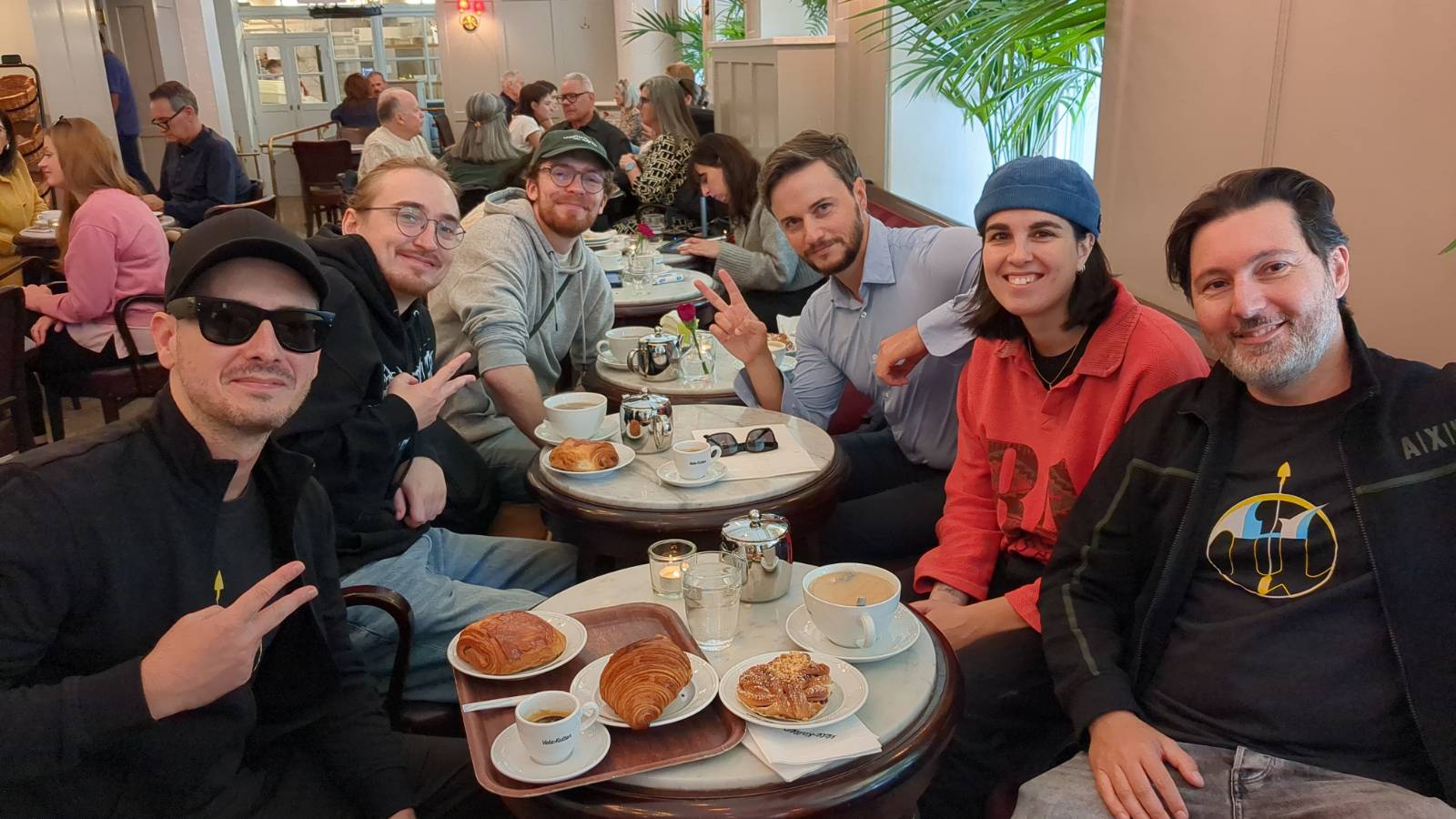 The cheerful group consisted of Bartosz Barlowski and his partner, Elena Felici, Arthur Tasquin, Lorenzo Raffi, Mario Veltri, Milan Gèrard, and Marcella Bragagnolo.